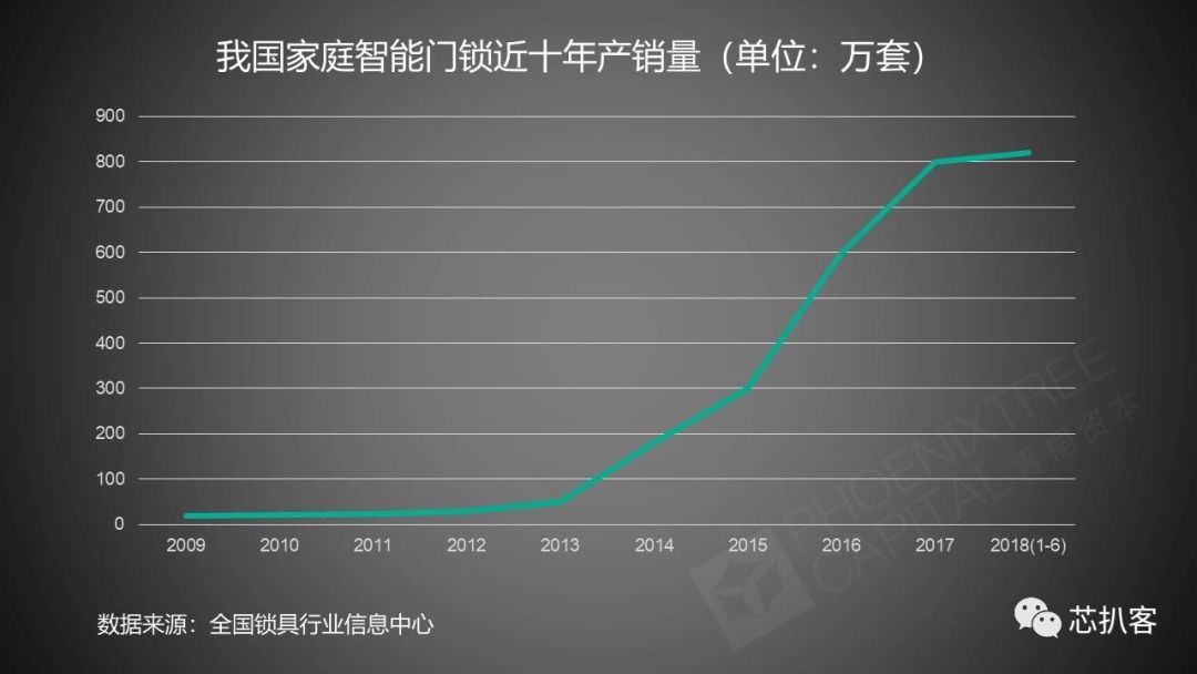 数据显示,家庭智能门锁市场在2017年开始进入快车道,销量达800万套,同比增长1倍以上。2018年更是飞速发展,仅上半年销量就接近830万套,超过2017年全年水平。