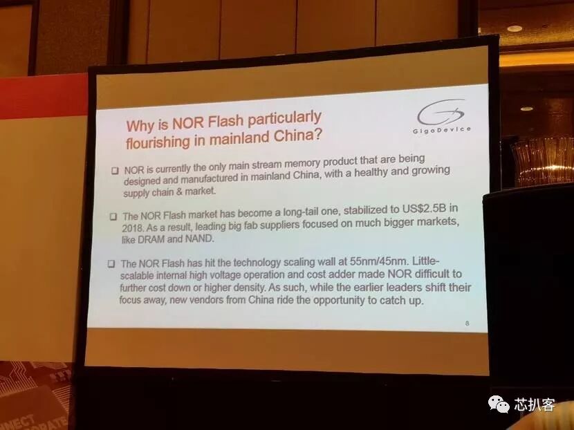 中国大陆NOR Flash市场格外繁荣。NOR Flash是目前中国大陆唯一的主流存储产品,拥有健康且不断增长的供应链和市场。NOR Flash市场已成为长尾市场,2018年稳定至25亿美元。因此,大型晶圆厂供应商专注于更大的市场营销,如DRAM和NAND。NOR Flash已经达到55/ 45nm的技术扩展壁垒。有限可扩展的内部高压操作和成本叠加使得NOR Flash难以进一步降低成本或提高密度。因此,虽然早期的领导者将注意力转移到了别处,但来自中国的新供应商会抓住机会趁势赶上。