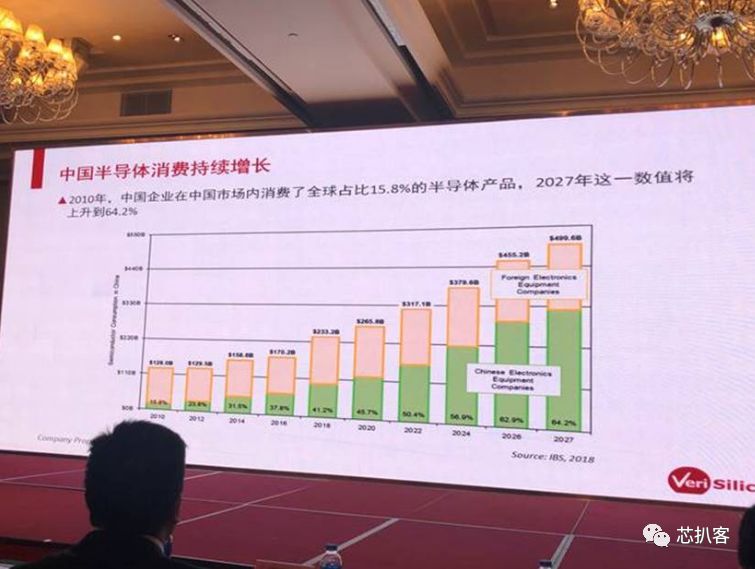 中国半导体消费市场持续增长。根据IBS数据,2010年中国企业在中国市场内消费的半导体产品占据全球总量的15.8%,预计到2020年将达到45.7%,且在2027年将进一步提升到64.2%。