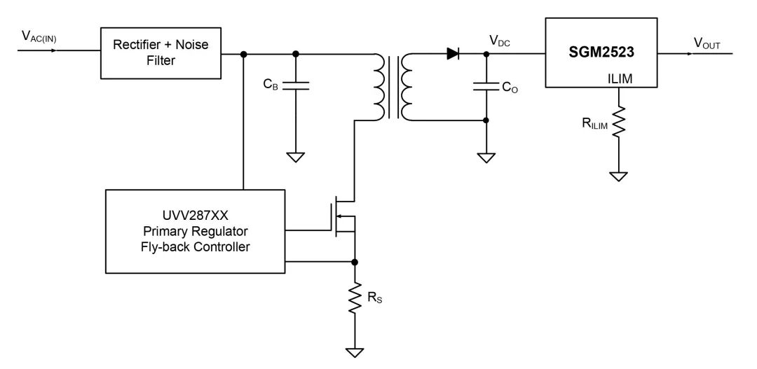 图2 在AC/DC电源中使用SGM2523进行限流和保护